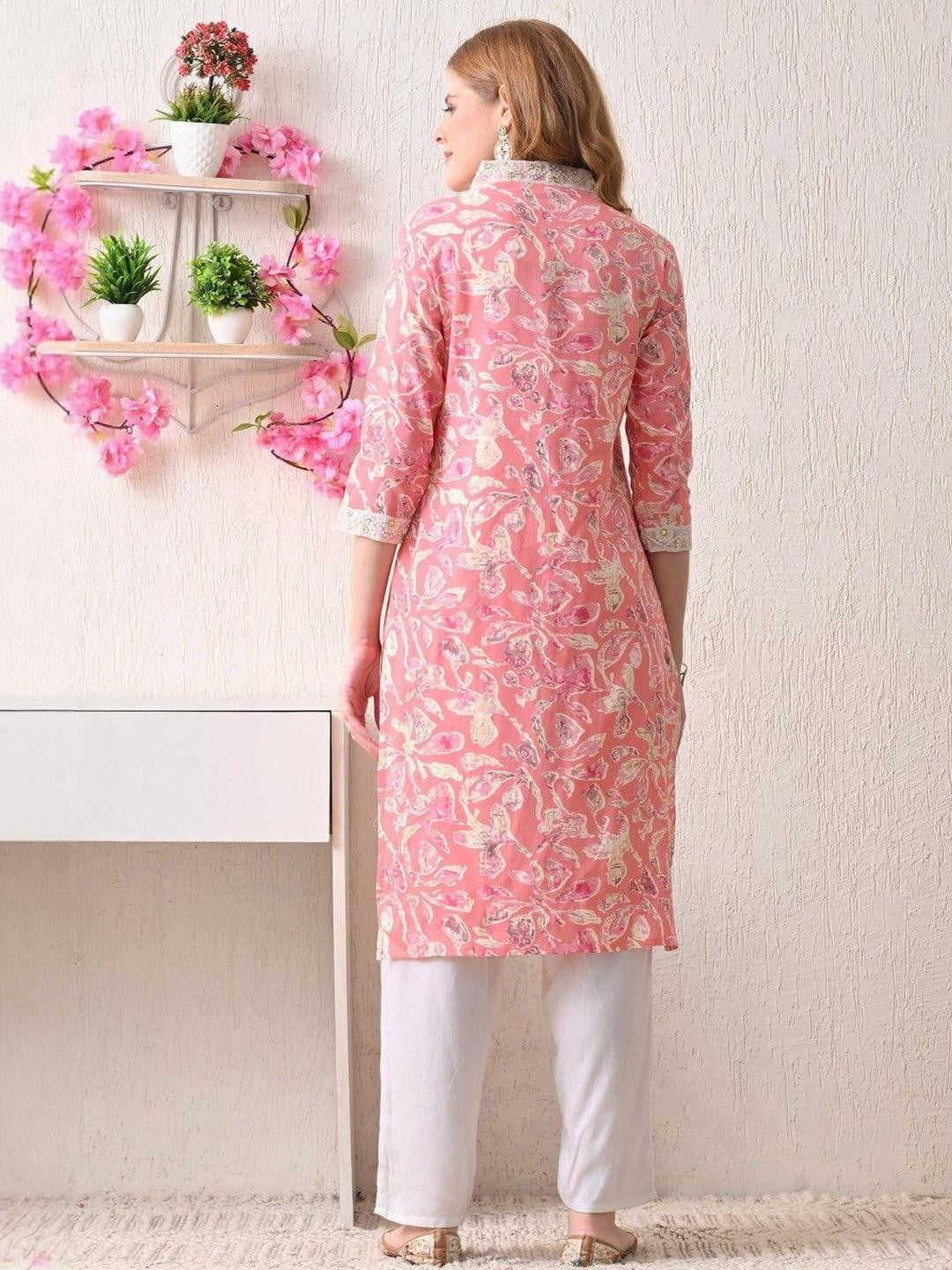 Floral Printed Sweetheart Neck Cotton Straight Kurta