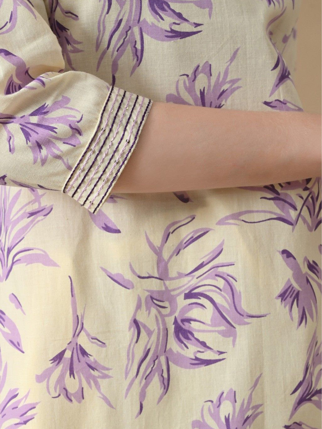 Women Floral Embroidered V-Neck Thread Work Straight Kurta