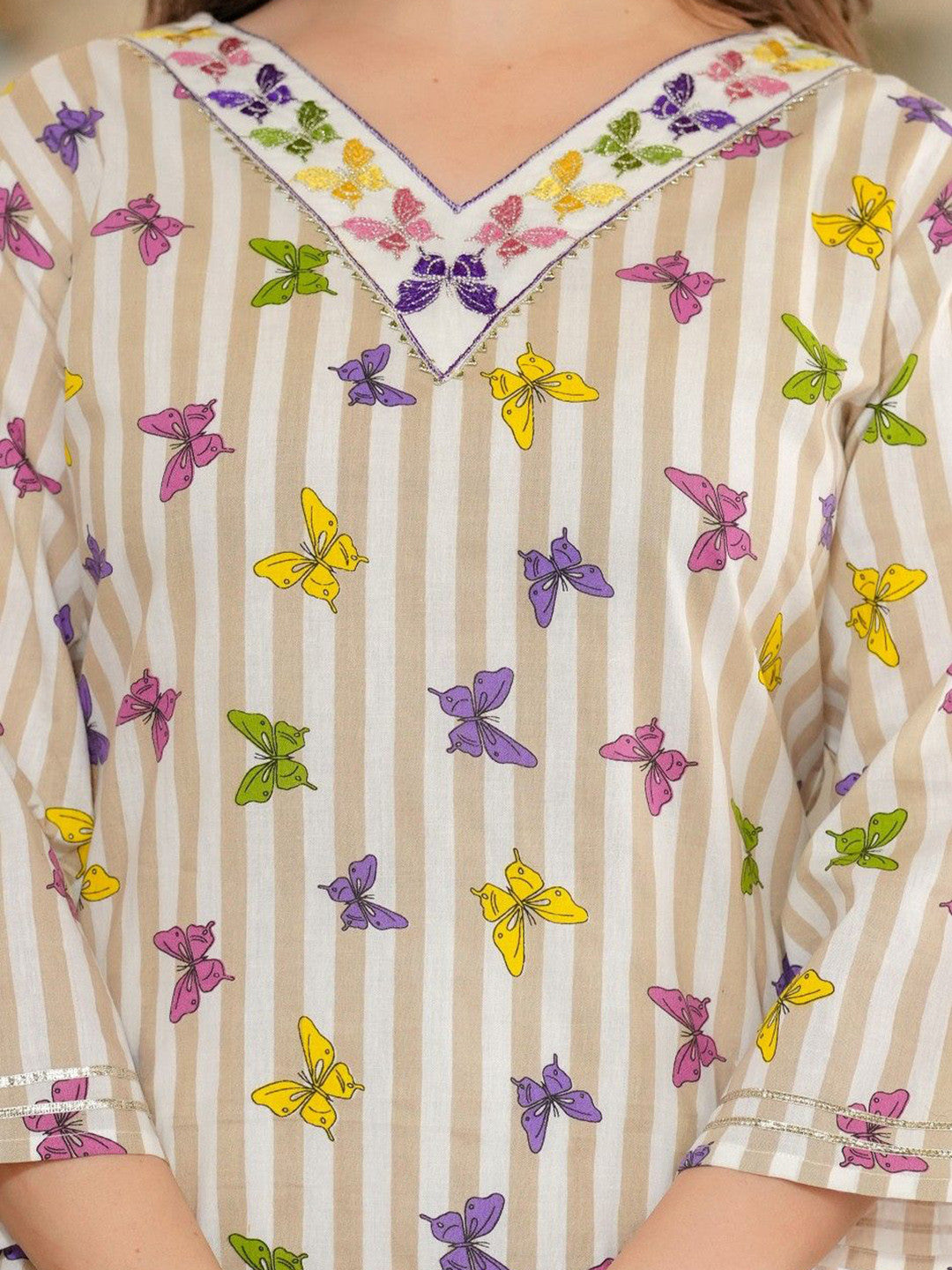 Women Geometric Checked Keyhole Neck Thread Work Kurta
